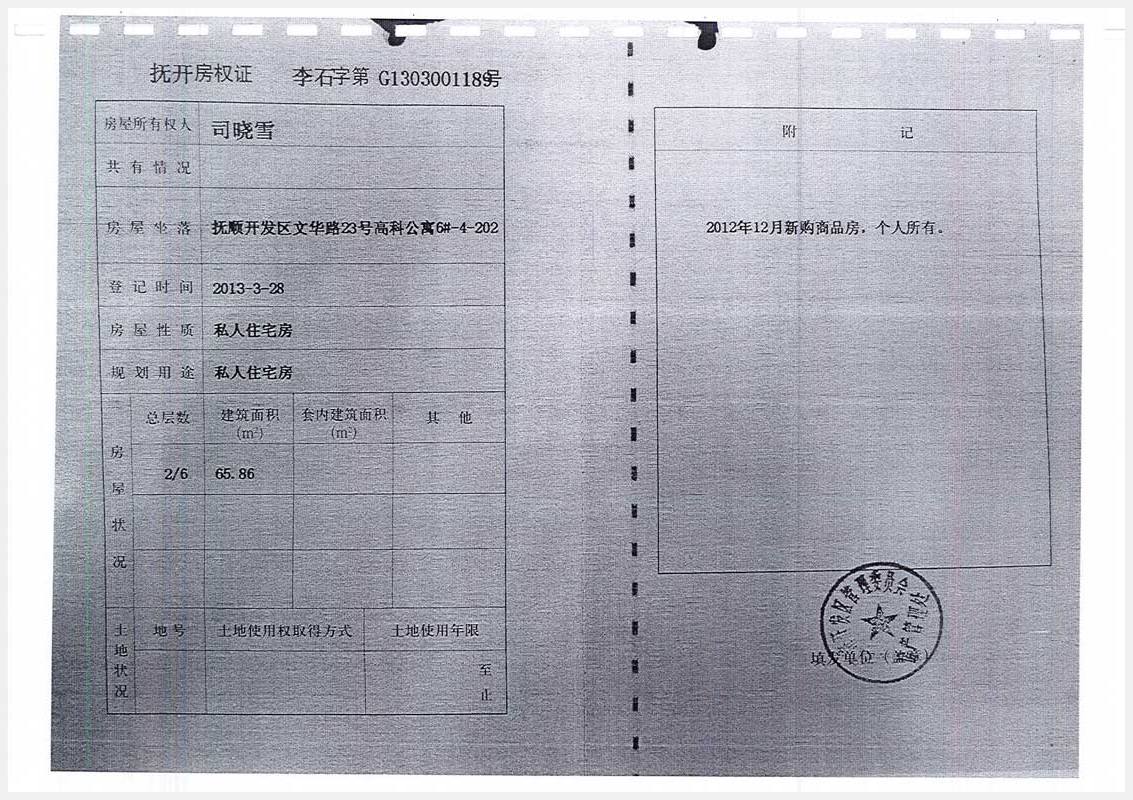 地址:撫順開發區文華路23號高科公寓 標的號:24-5