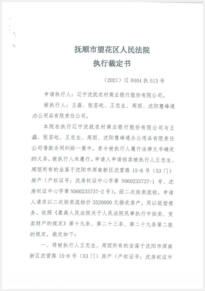 25號(hào) 沈陽市渾南新區(qū)沈營(yíng)路15-8號(hào)53門房產(chǎn)