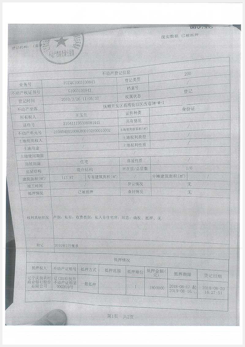 地址:撫順開發區高灣街 標的號:27-2