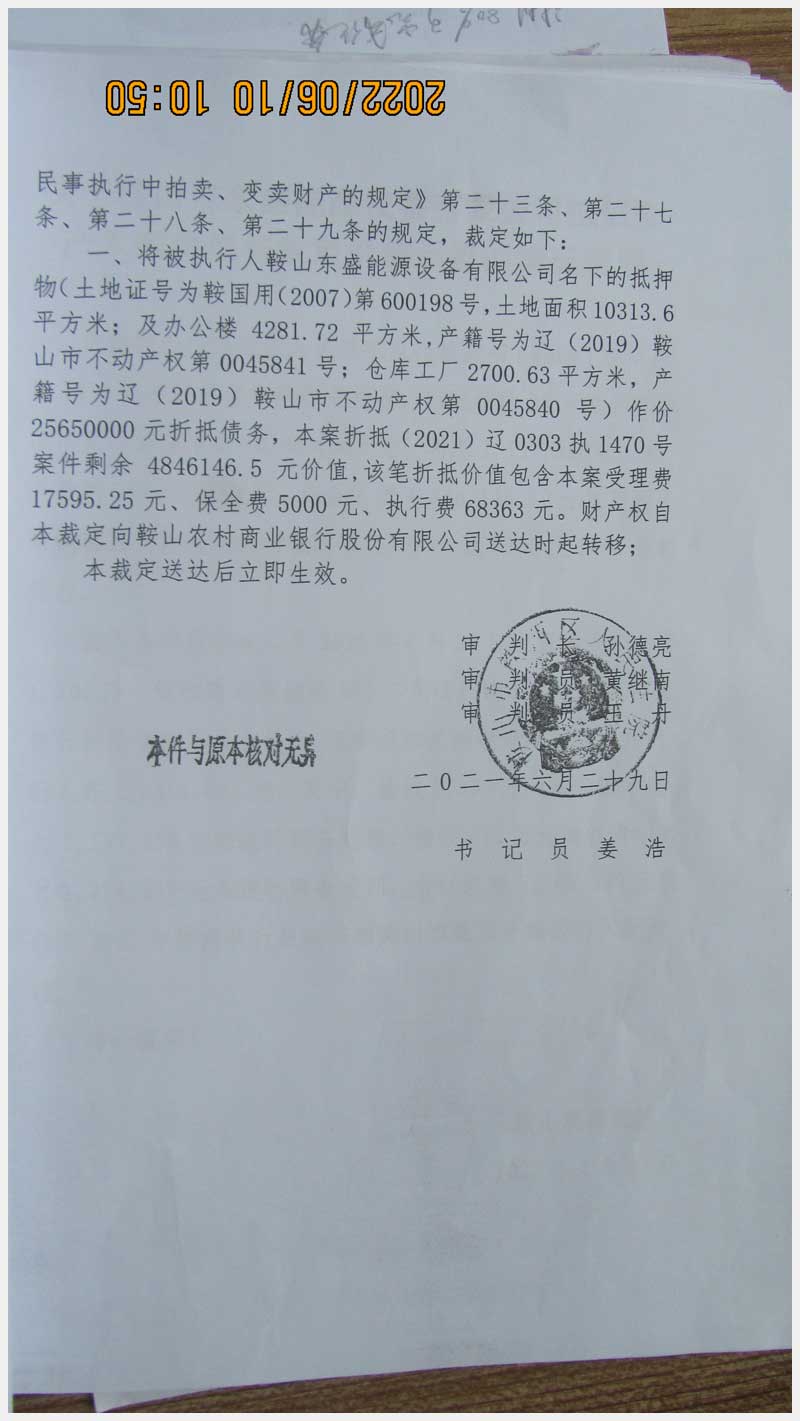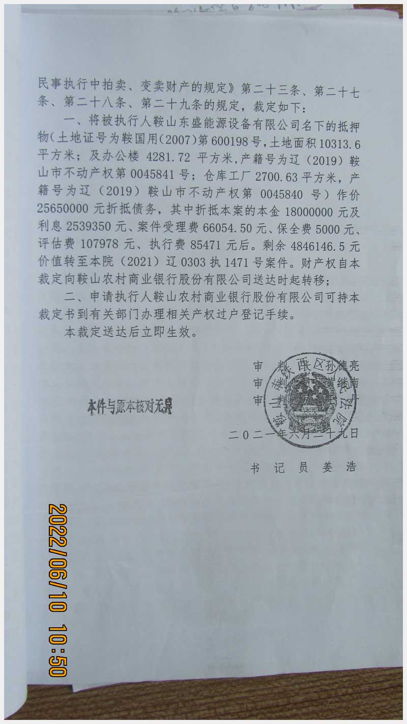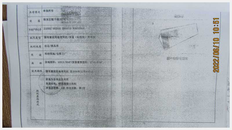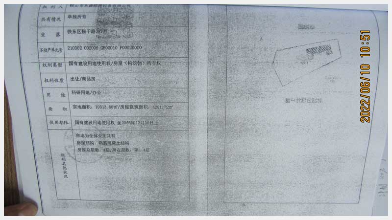 名稱:鞍山市鐵東區鞍千路287號房產及土地使用權 面積:房產:6982.35㎡;土地:10313.6㎡ 瀏覽次數:1303