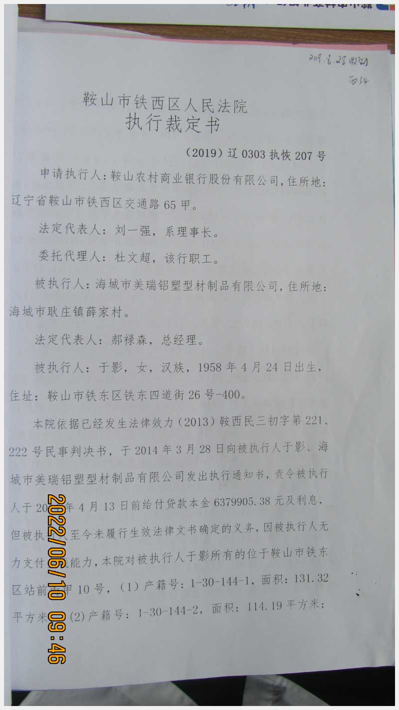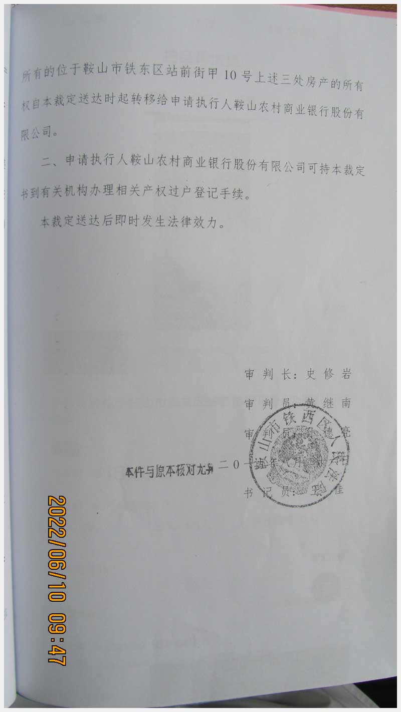 地址:鞍山市鐵東區(qū)站前街甲10號(hào) 標(biāo)的號(hào):89