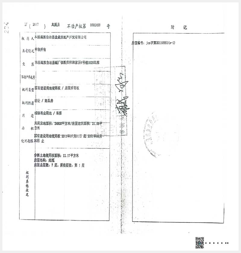 148-8號 本溪滿族自治縣堿廠鎮糧庫祥和家園4號樓1025車庫