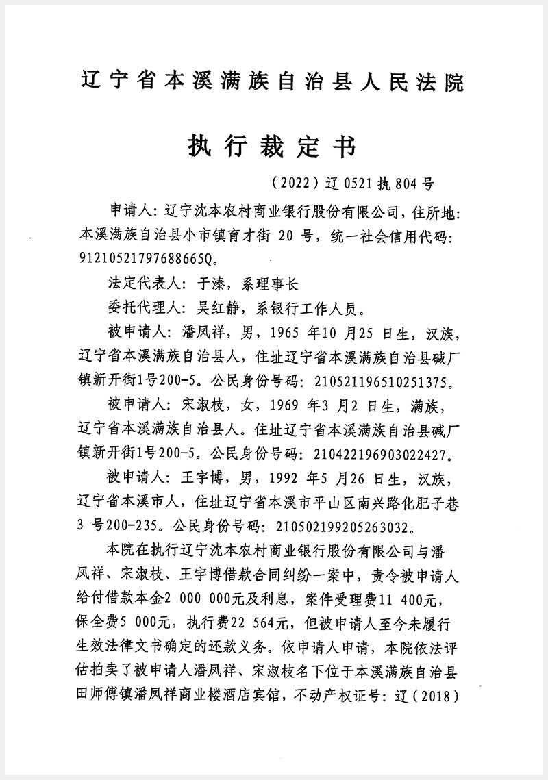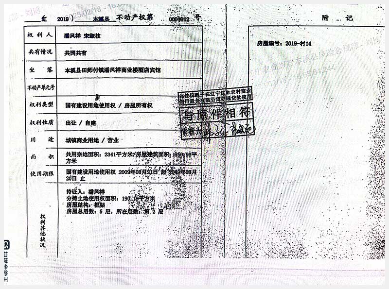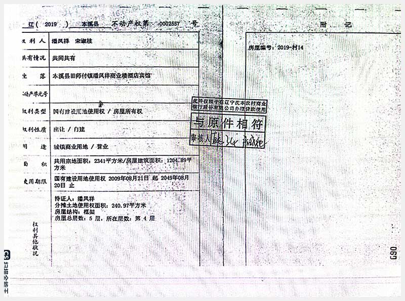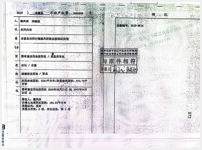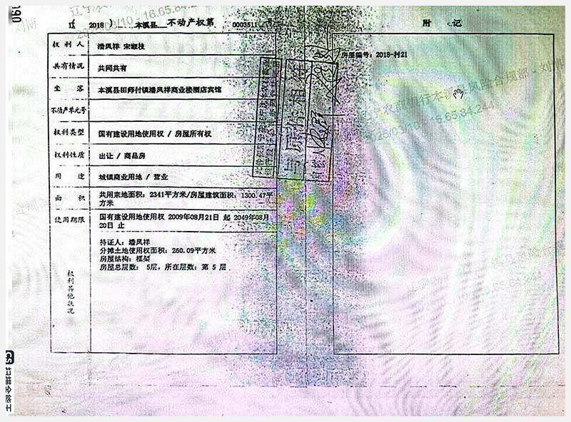 152號 本溪滿族自治縣田師付鎮潘鳳祥商業樓酒店賓館
