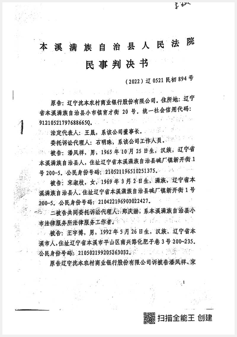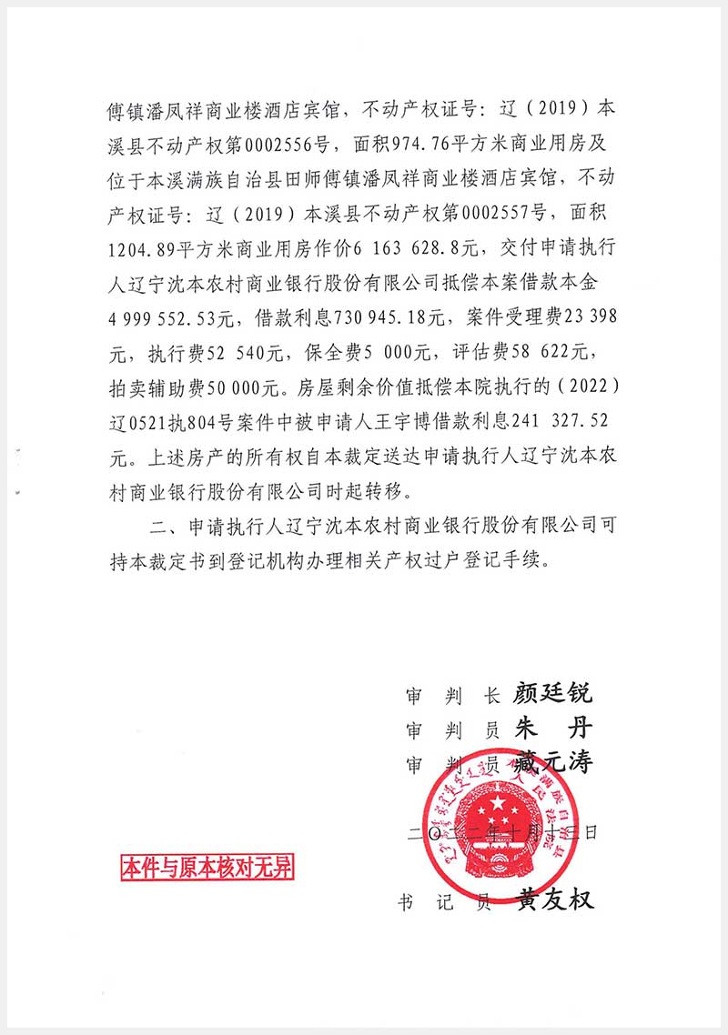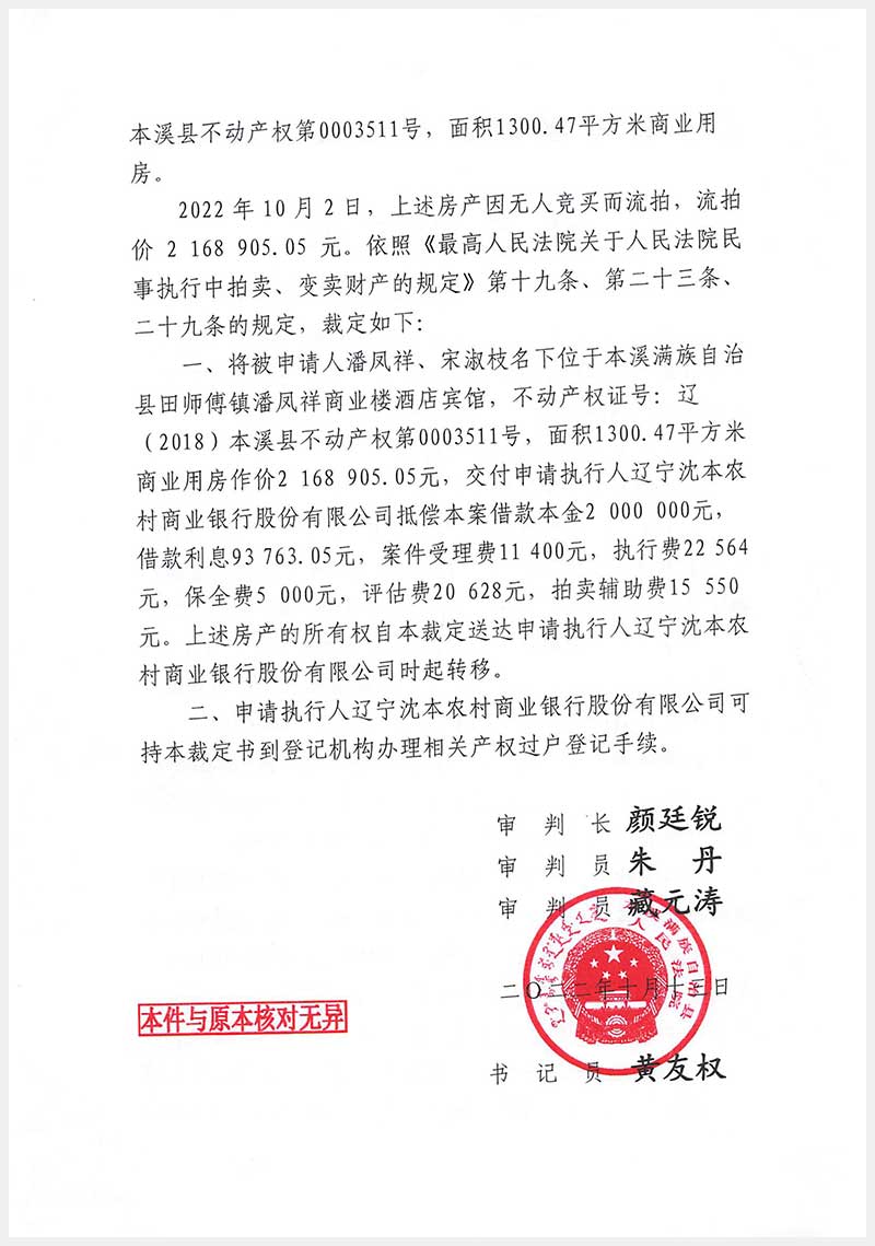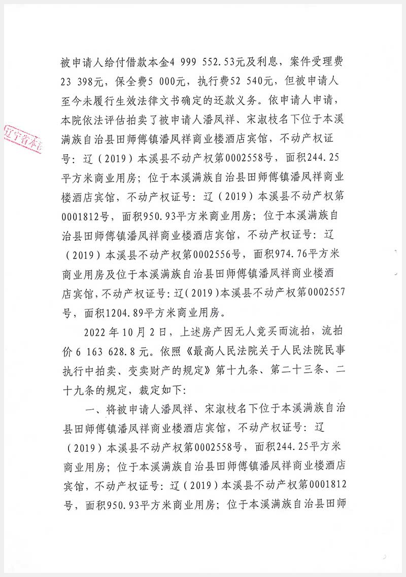 152號 本溪滿族自治縣田師付鎮潘鳳祥商業樓酒店賓館