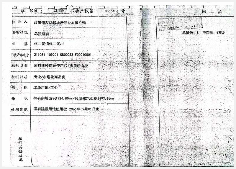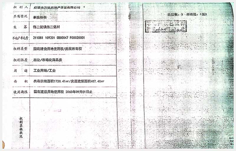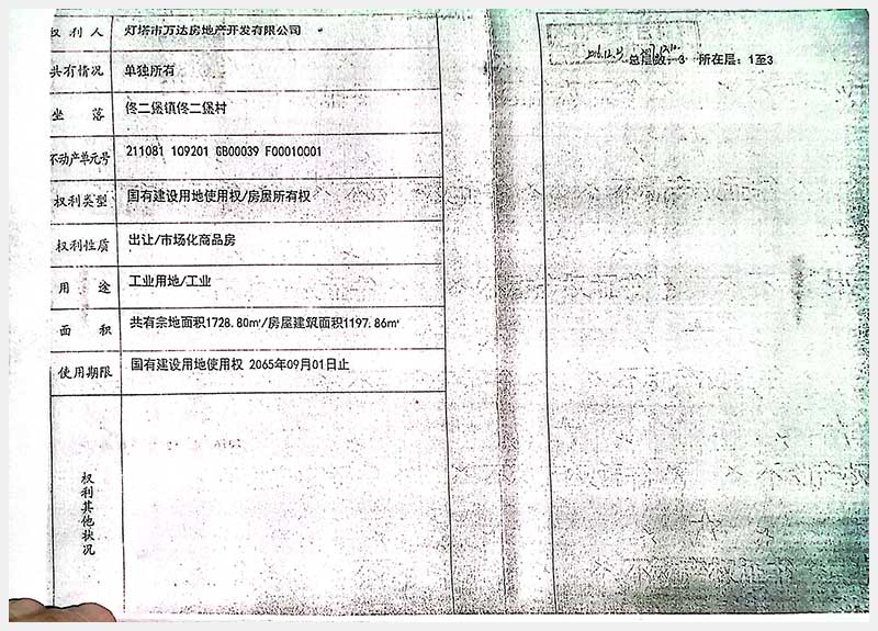 名稱(chēng):遼陽(yáng)市燈塔市豐帝工業(yè)園15處房產(chǎn) 面積:349.3㎡—1197.86㎡ 瀏覽次數(shù):298