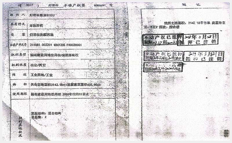 名稱:燈塔市兆麟西路廠房及土地使用權 面積:房產:1235㎡;土地:3142.18㎡ 瀏覽次數:303