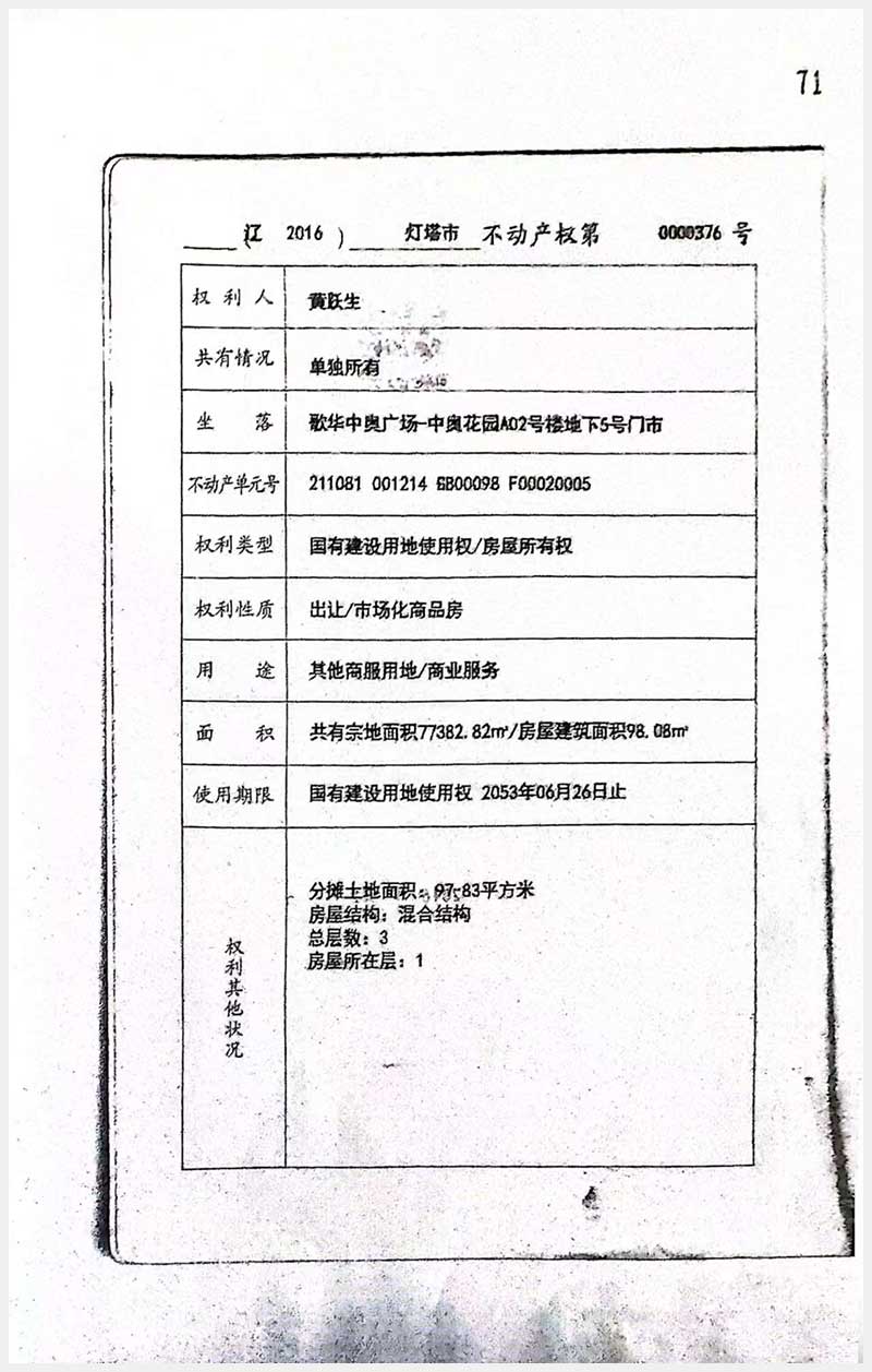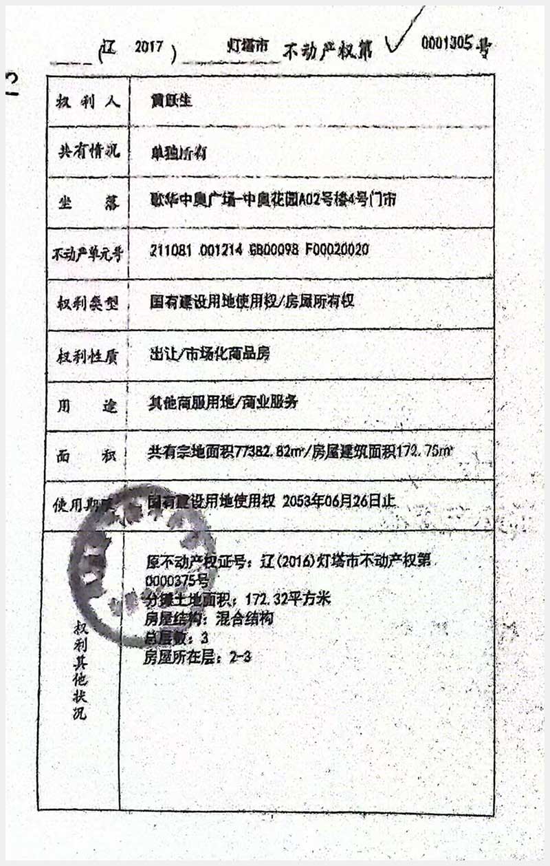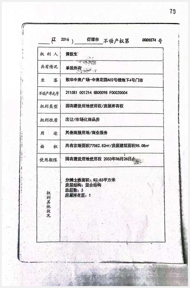 名稱:燈塔市歌華中奧廣場A02號樓4號、5號房產 面積:4號:270.83㎡;5號:269.51㎡ 瀏覽次數:304