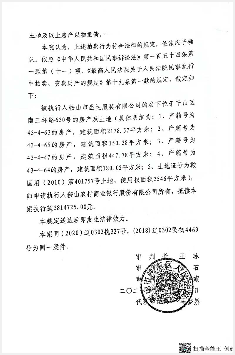115號 鞍山市千山區(qū)南三環(huán)路630號房產(chǎn)及土地使用權
