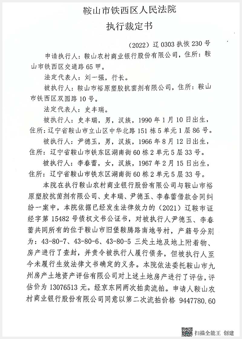 126號 鞍山市舊堡鞍騰路南地號村房產及土地使用權