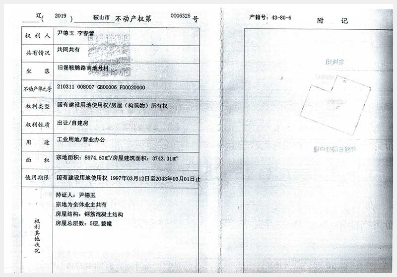 名稱:鞍山市舊堡鞍騰路南地號村房產及土地使用權 面積:房產:5825.96㎡;土地:8674.5㎡ 瀏覽次數:229
