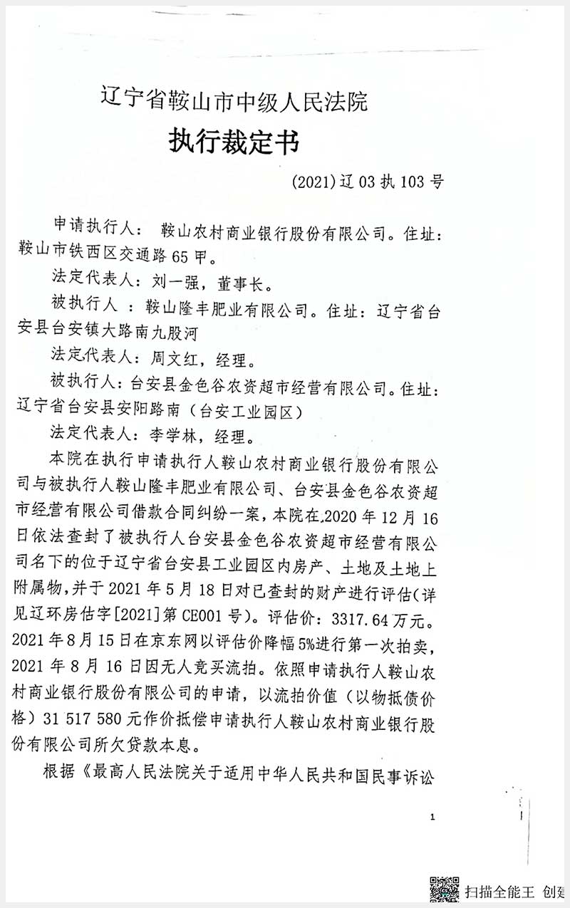127號 臺安縣工業(yè)園區(qū)房產(chǎn)及土地使用權(quán)