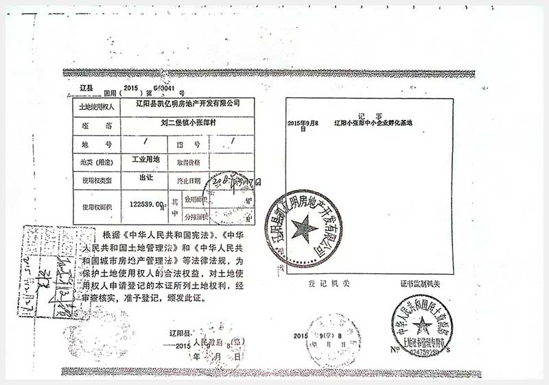 名稱:遼陽縣劉二堡鎮小張郎村土地使用權 面積:122539㎡ 瀏覽次數:14