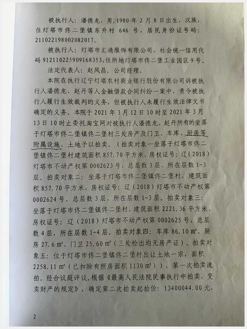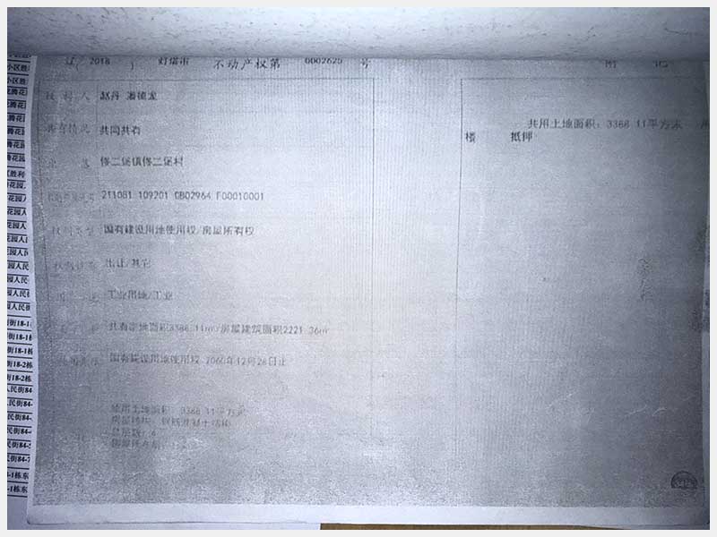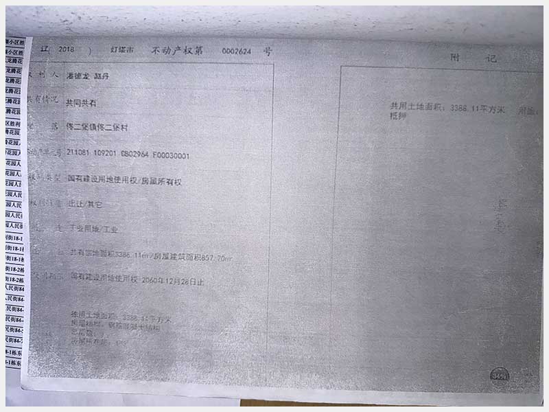 名稱:燈塔市佟二堡鎮佟二堡村房產及土地使用權 面積:房產:有證:3079.06㎡,無證:139.3㎡;土地:3388.11㎡ 瀏覽次數:23