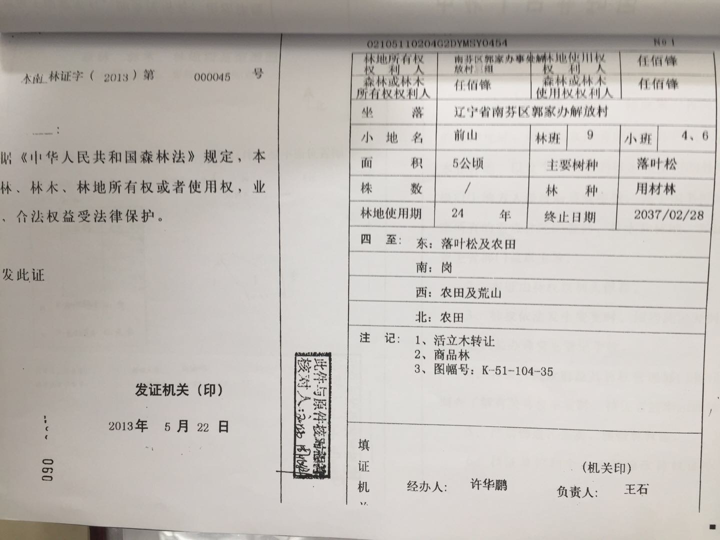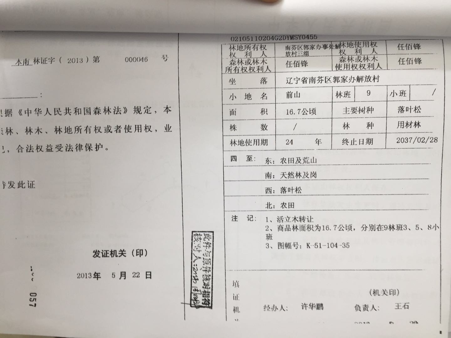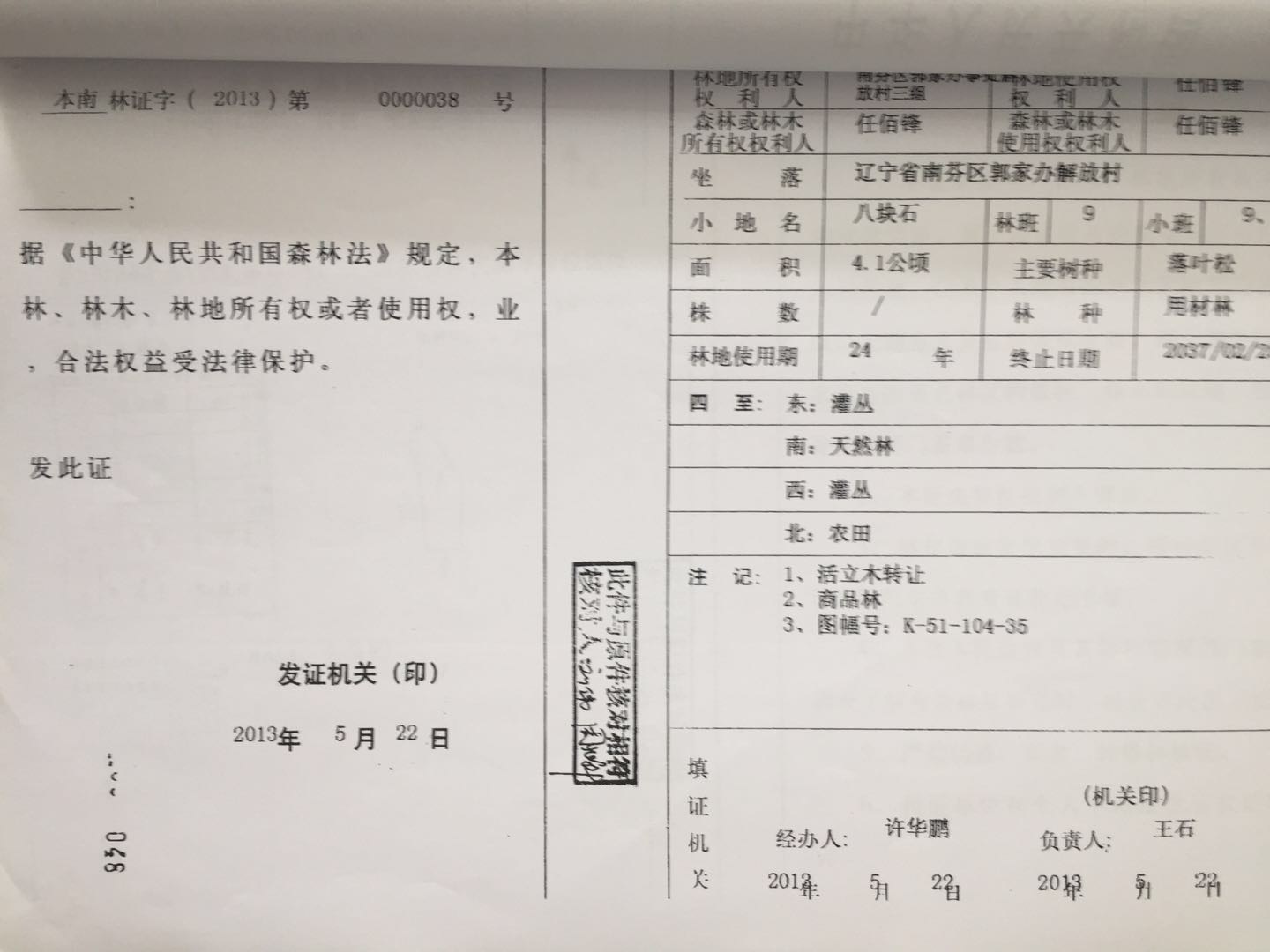 15號 本溪市南芬區郭家辦事處解放村林地31處