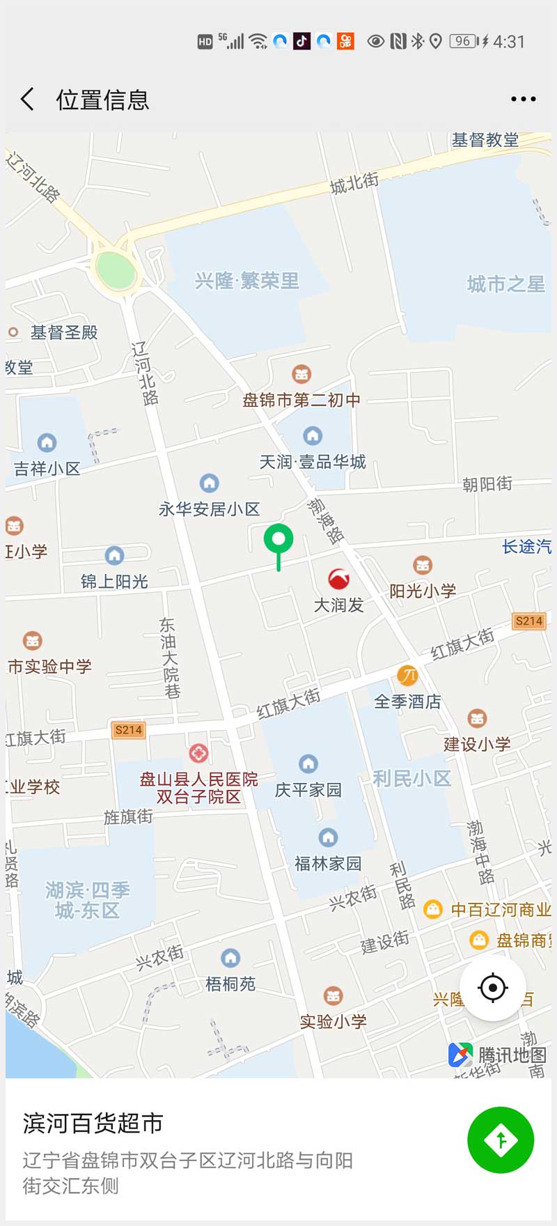 12號 盤錦雙臺子區綠野小區三處商網(濱河百貨超市)