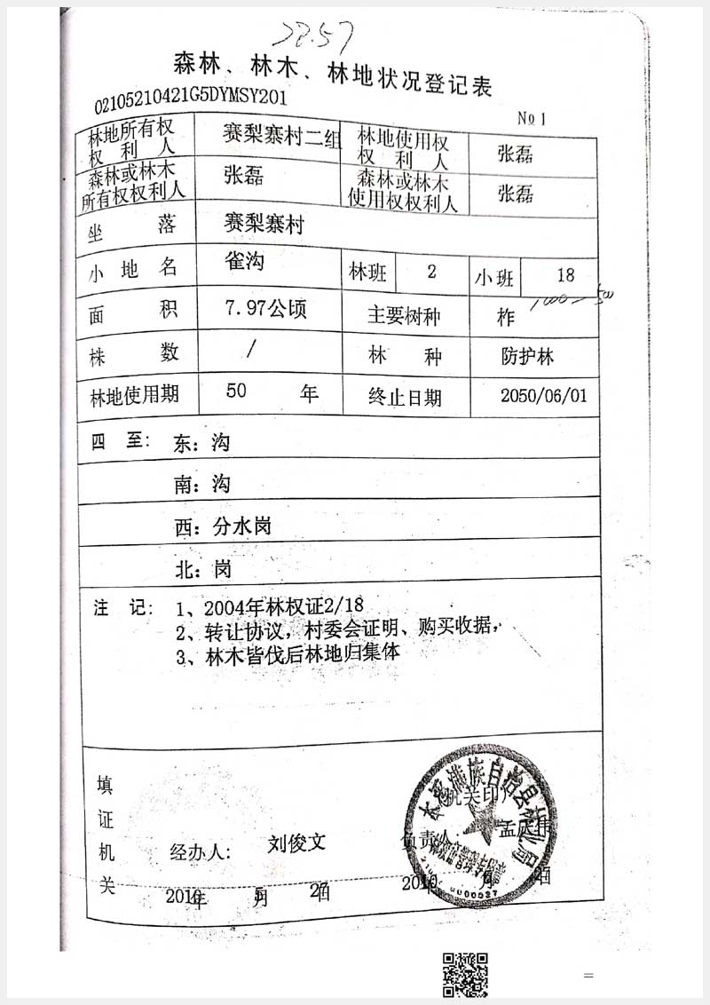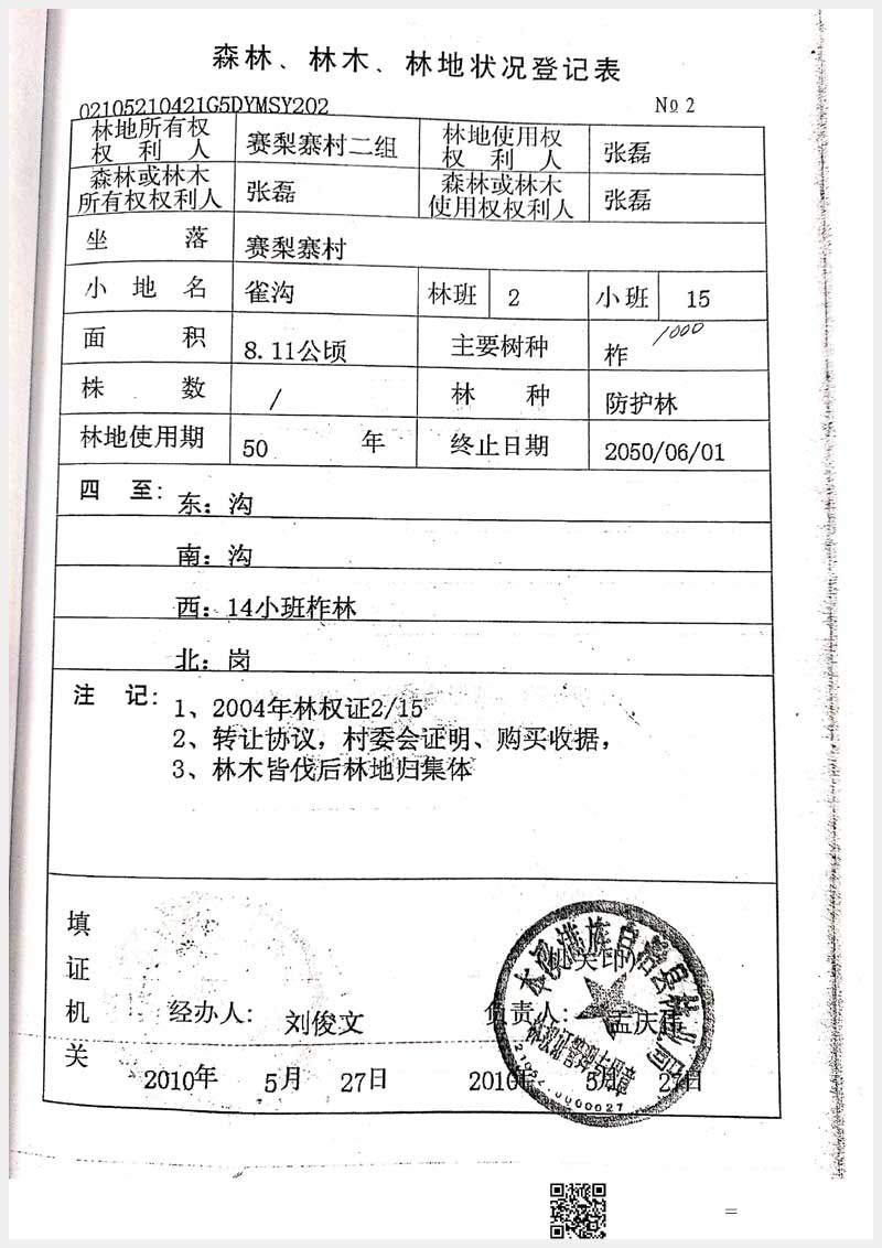 32號 本溪市滿族自治縣賽梨寨村二組林權