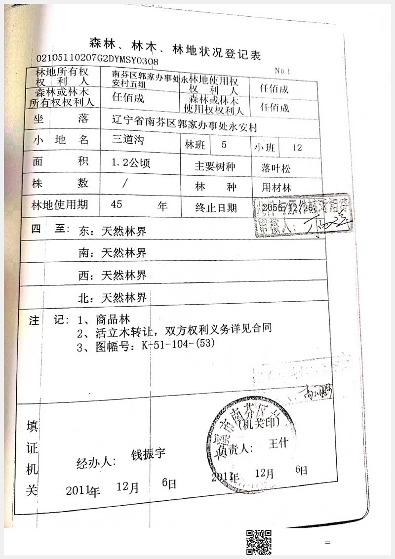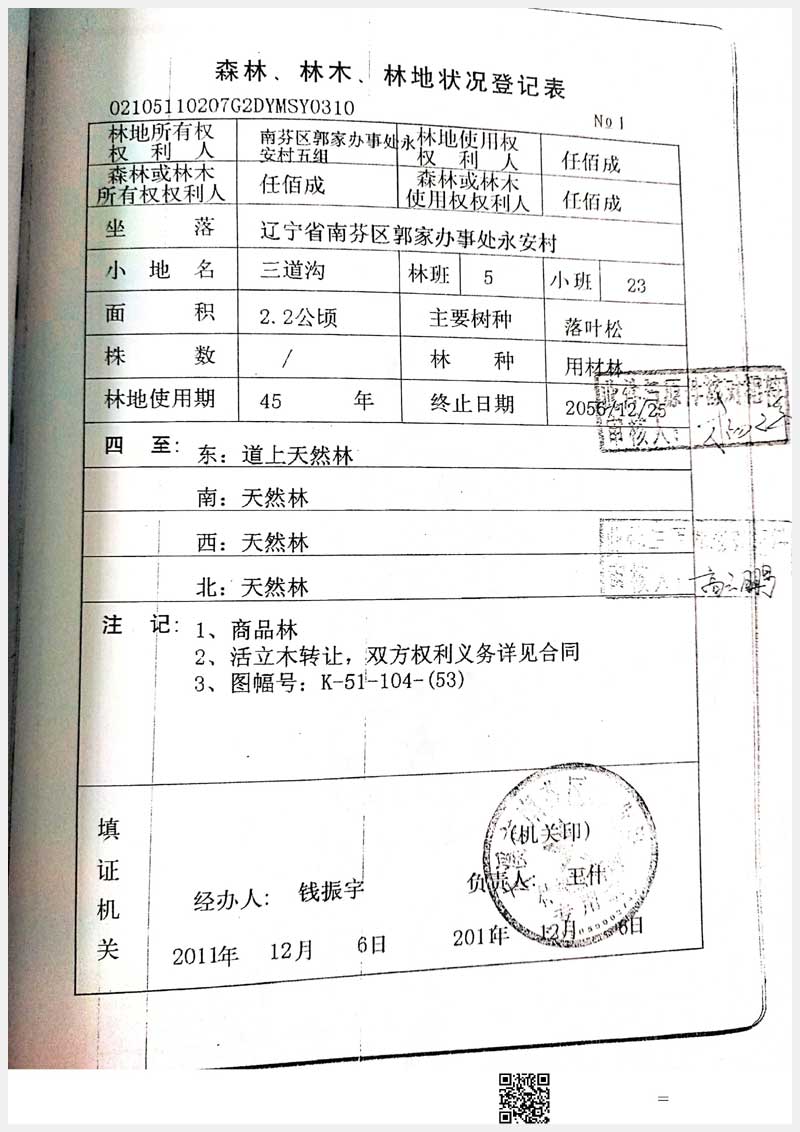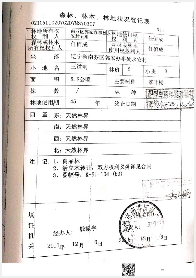 34號 南芬區郭家街道辦事處永安村林權