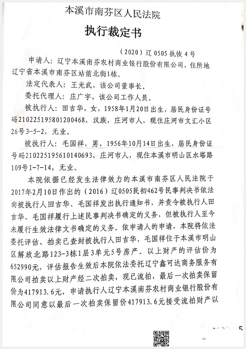 41號 本溪市明山區(qū)解放北路123-3棟1層3單元5號房產(chǎn)