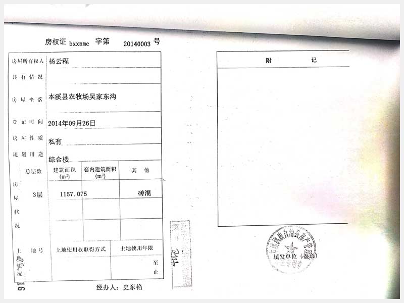 名稱:本溪縣農牧場吳家東溝房產 面積:1157.075㎡ 瀏覽次數:1622