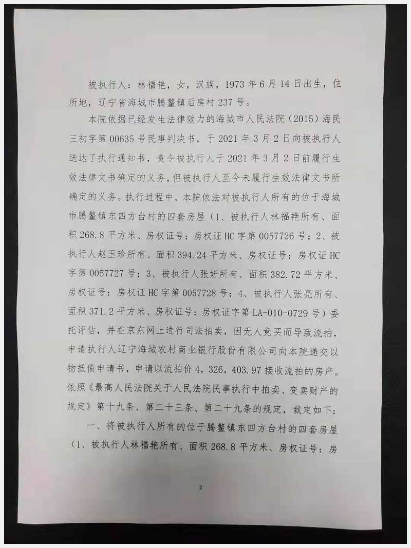 地址:海城市騰鰲溫泉管理區東四方臺居委會 標的號:154