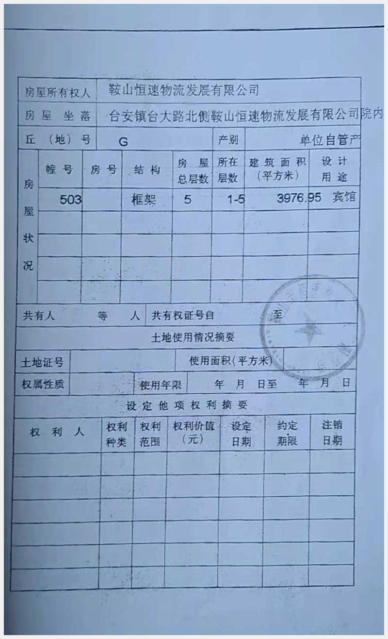 70號 臺安鎮臺大路北側鞍山恒速物流發展有限公司院內房產