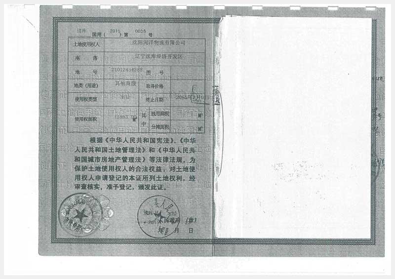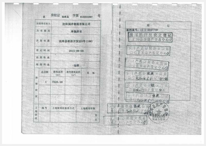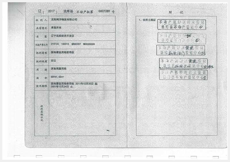 名稱:沈陽市法庫縣經濟開發區6號房產及土地使用權 面積:房產:22107.28㎡、土地:69834㎡ 瀏覽次數:983