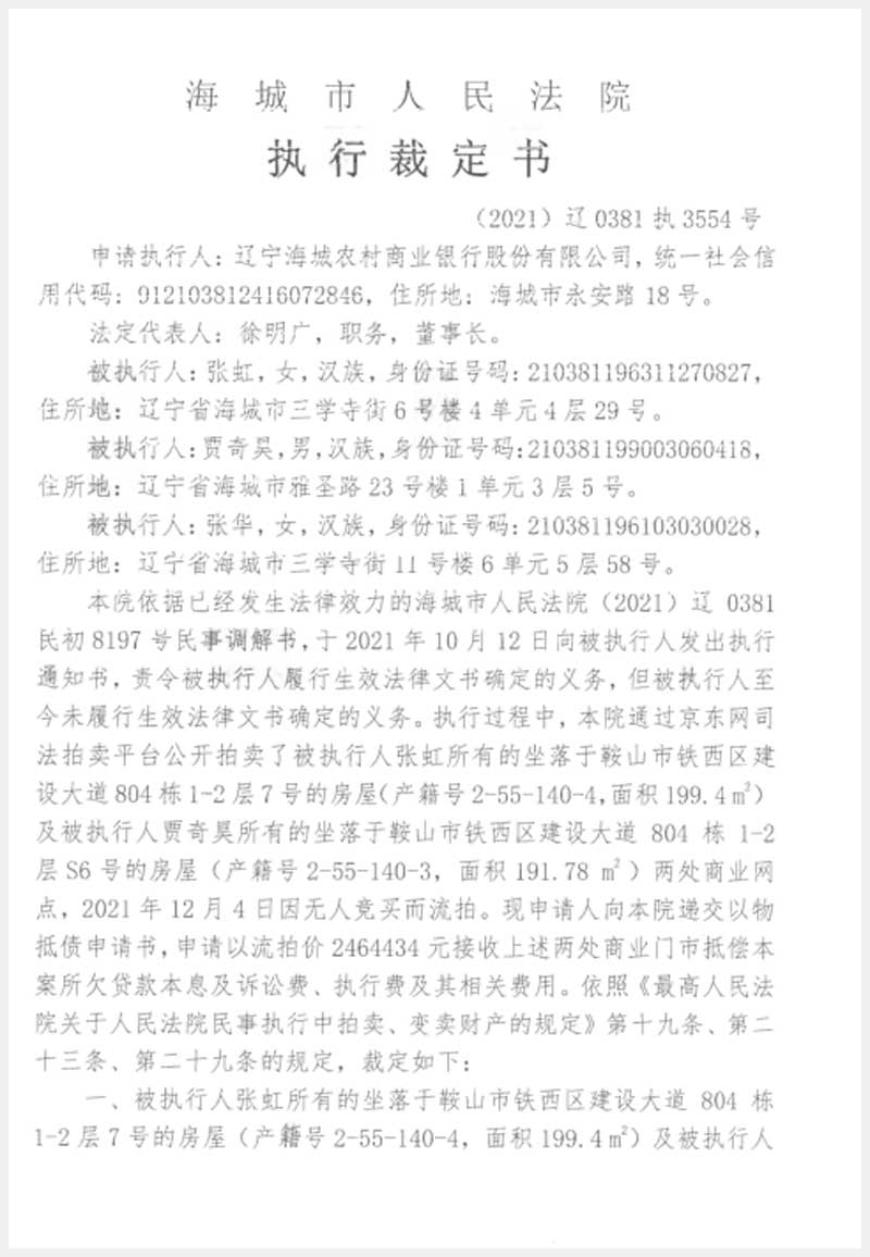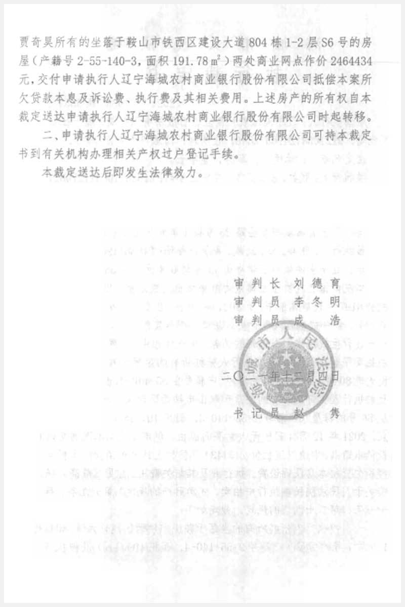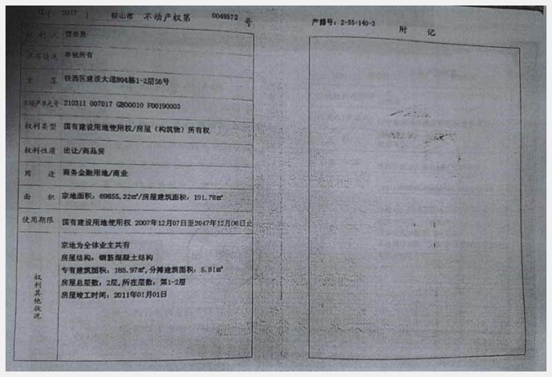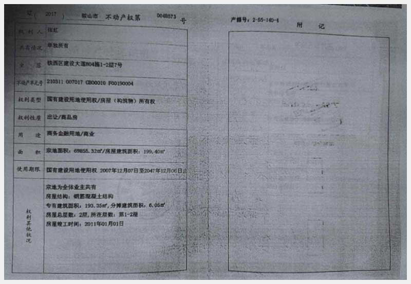 地址:鞍山市鐵西區(qū)建設(shè)大道804棟 標(biāo)的號:168