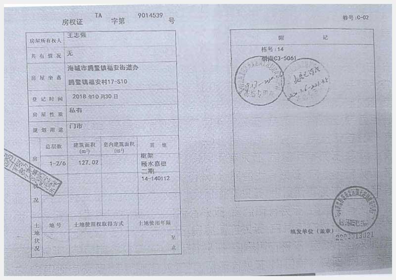 名稱:海城市騰鰲鎮(zhèn)頤水嘉德二期福安村17-S9、S10房產(chǎn) 面積:178.22㎡、127.02㎡ 瀏覽次數(shù):1264