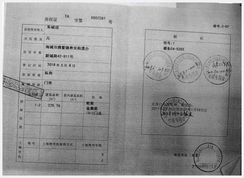 名稱:海城市騰鰲鎮(zhèn)壽安街道辦新城路42-S11號(hào)房產(chǎn) 面積:275.76㎡ 瀏覽次數(shù):1307