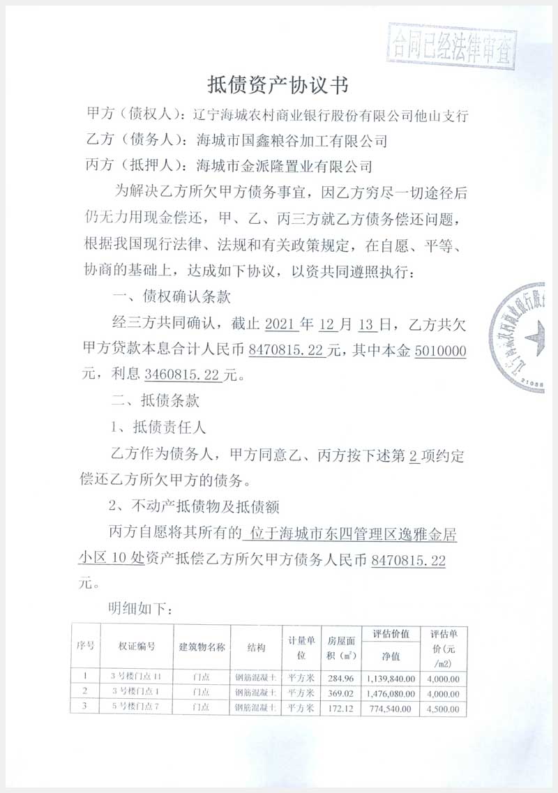 名稱(chēng):海城市金派隆置業(yè)有限公司位于東四鎮(zhèn)逸雅金居房產(chǎn)24處 面積:1392.27㎡ 瀏覽次數(shù):1182