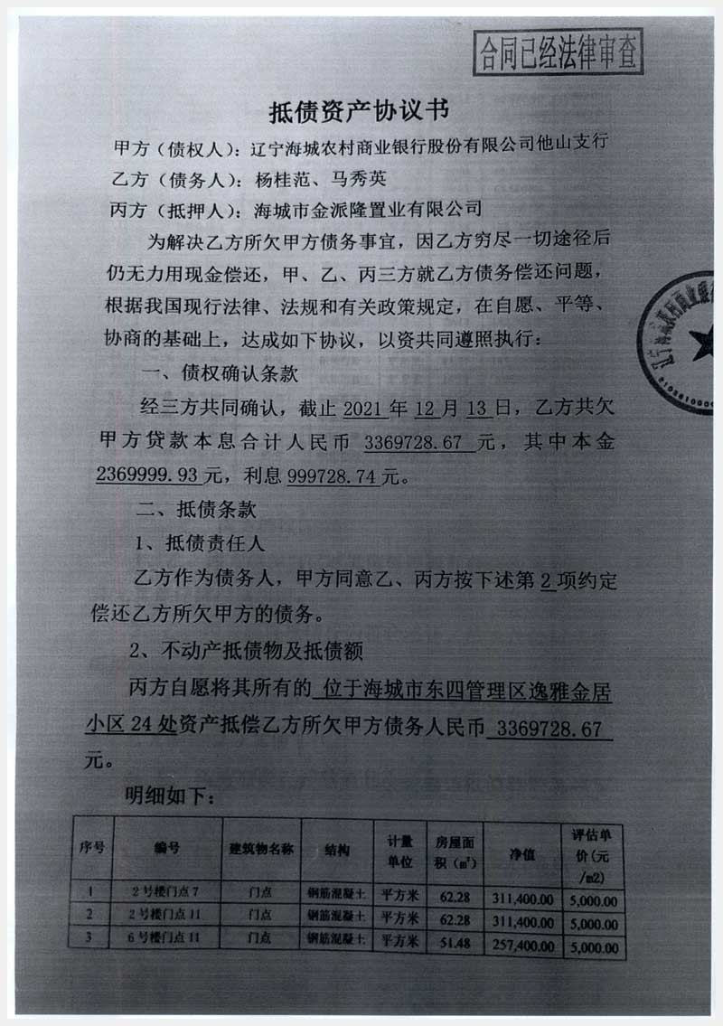 176號(hào) 海城市金派隆置業(yè)有限公司位于東四鎮(zhèn)逸雅金居房產(chǎn)24處