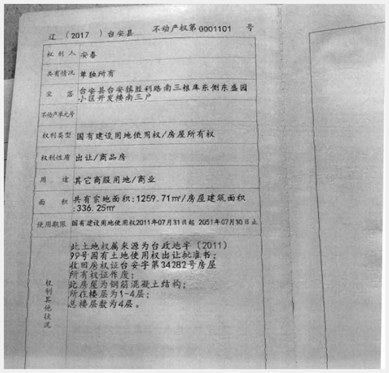 地址:臺安縣勝利路南三糧庫東側東盛園小區 標的號:180-1
