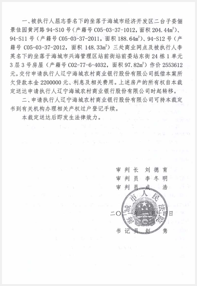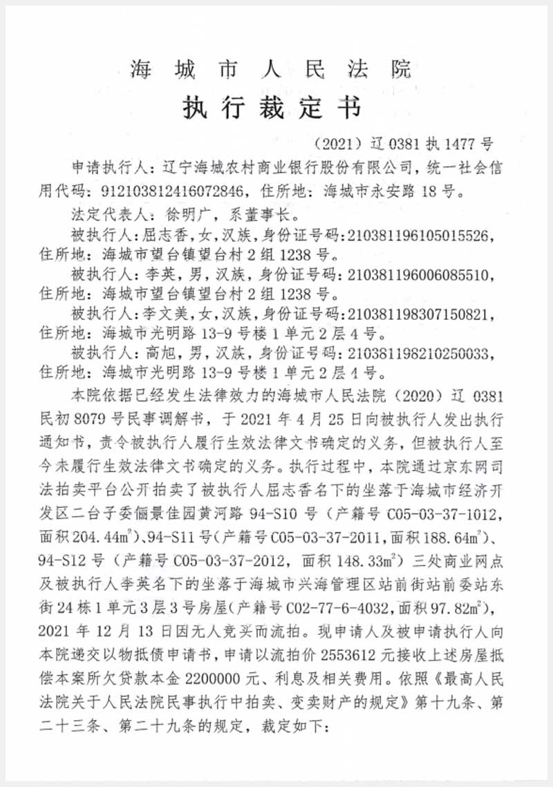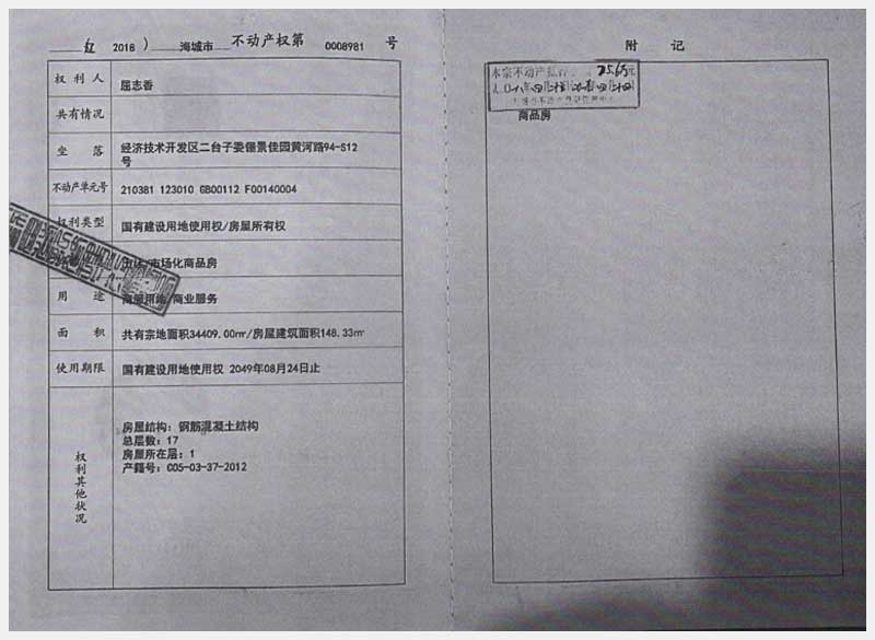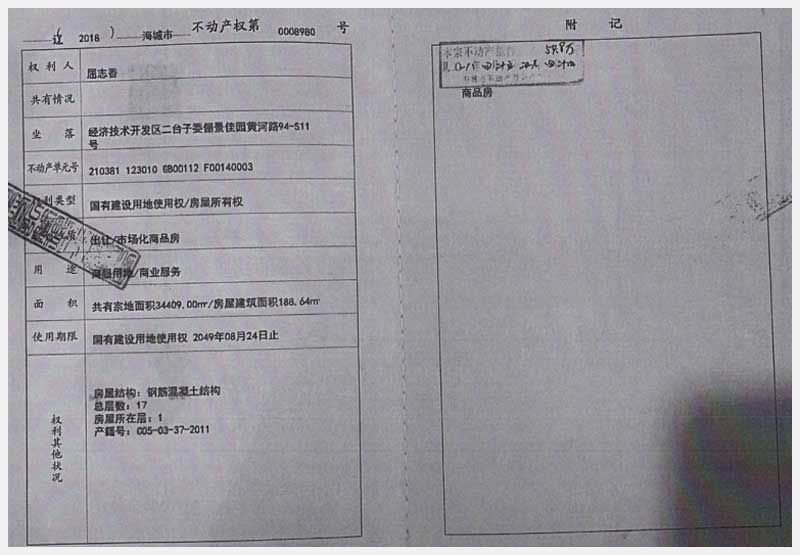地址:海城經(jīng)濟技術(shù)開發(fā)區(qū)二臺子委儷景佳園 標的號:186-1