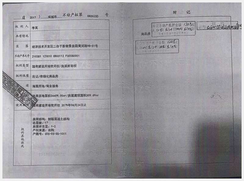 名稱:海城經濟技術開發區二臺子委儷景佳園黃河路98-S1號房產 面積:309.69㎡ 瀏覽次數:1098