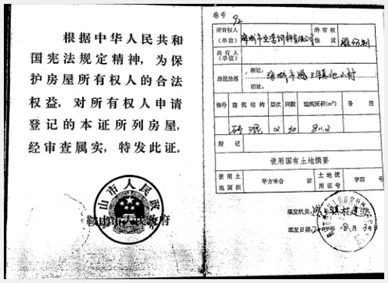 196號 海城市感王鎮他山村房產、土地使用權及機器設備