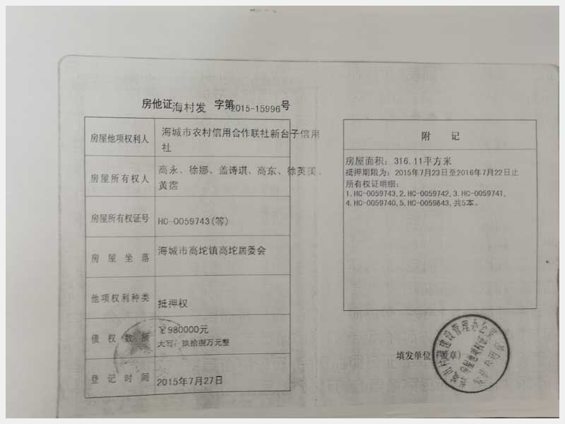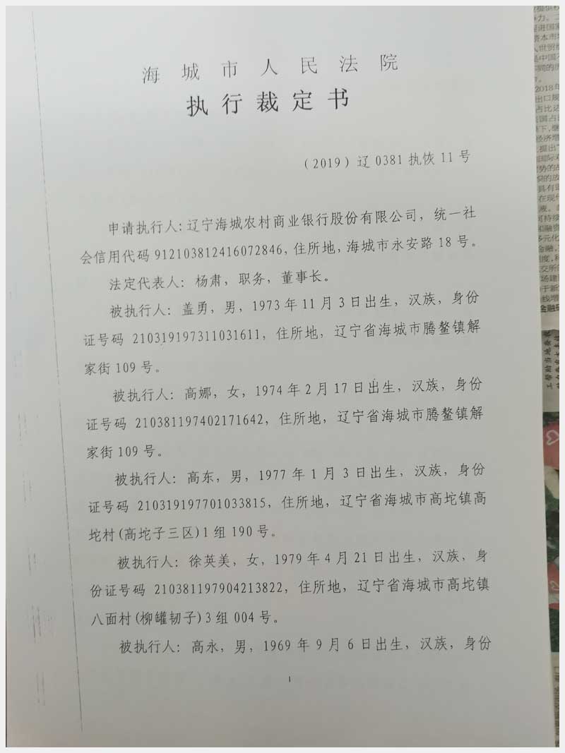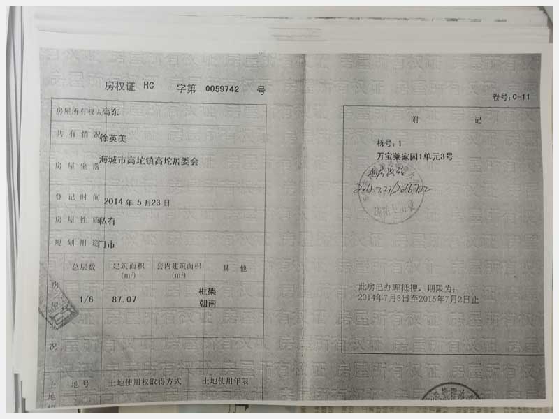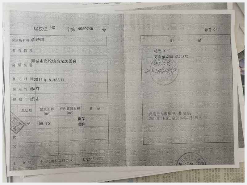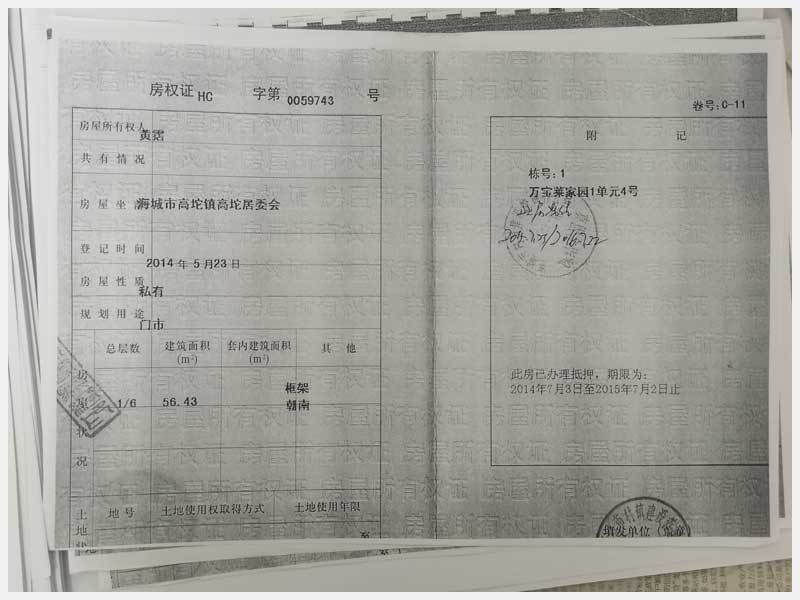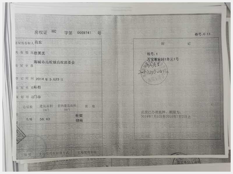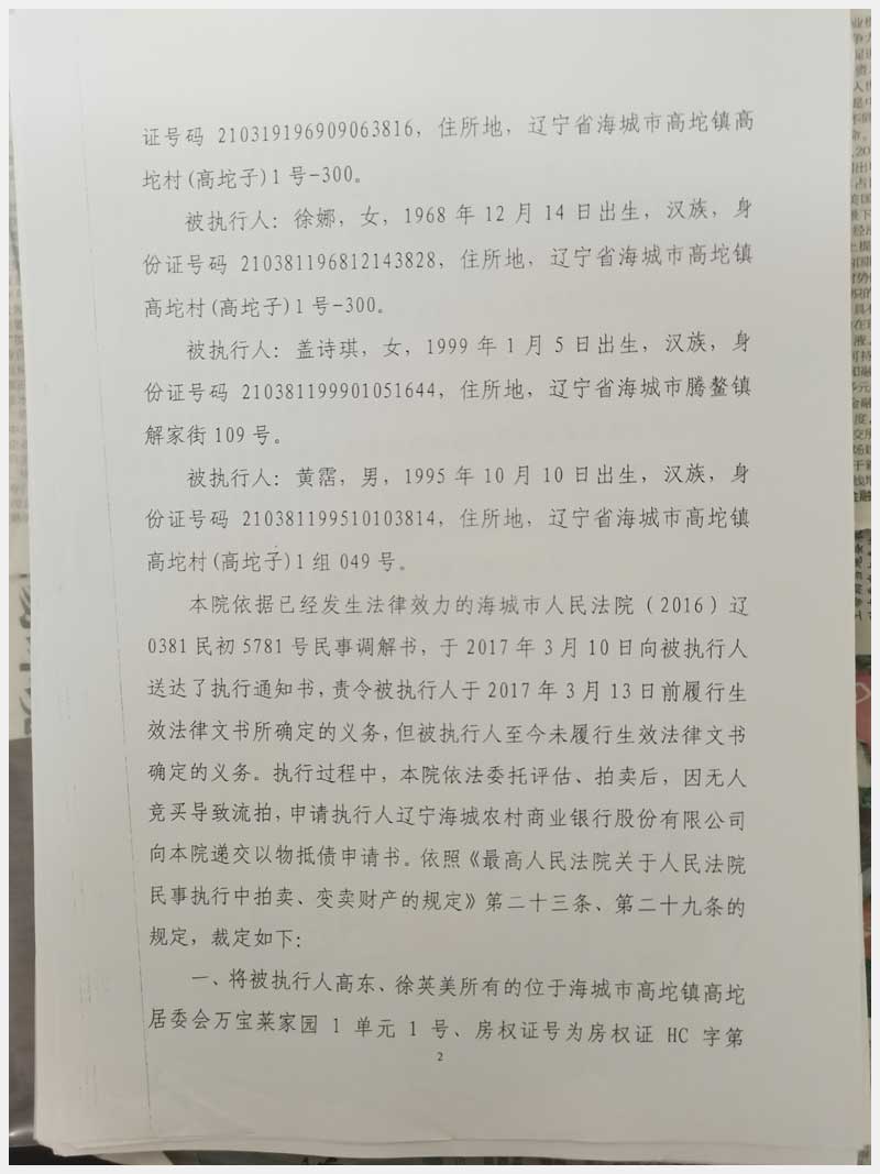 地址:海城市高坨鎮高坨居委會萬寶萊家園 標的號:203
