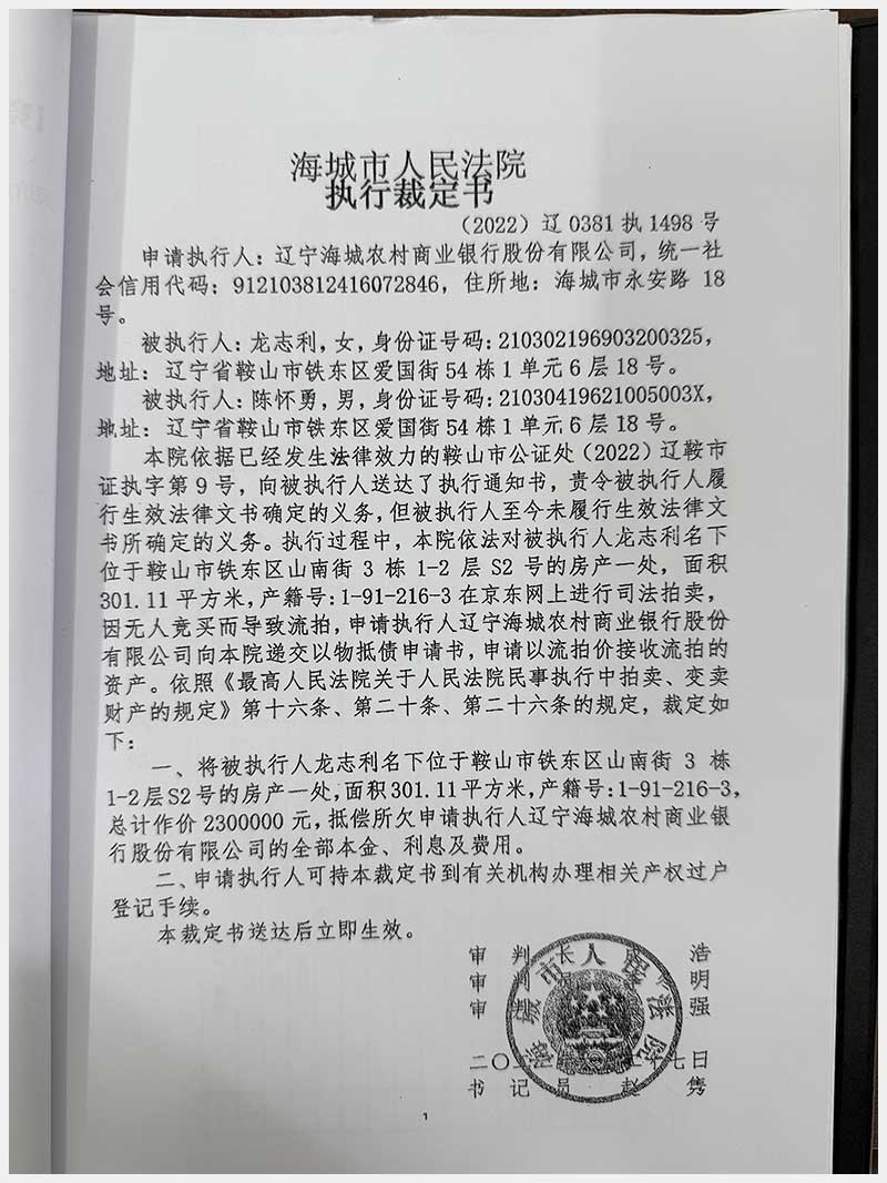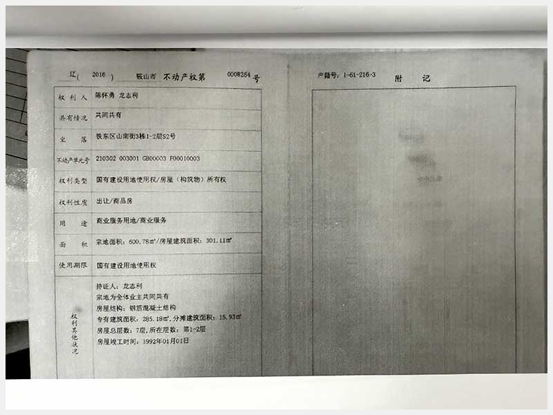 地址:鞍山市鐵東區山南街3棟 標的號:212