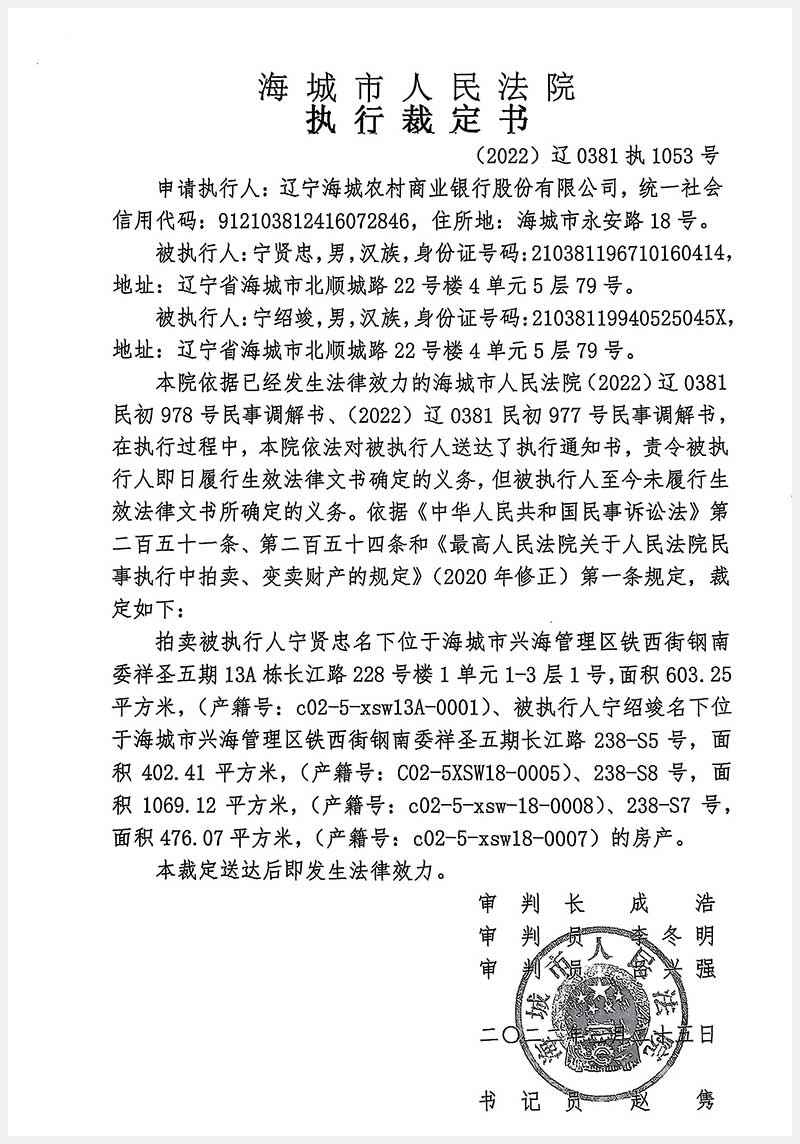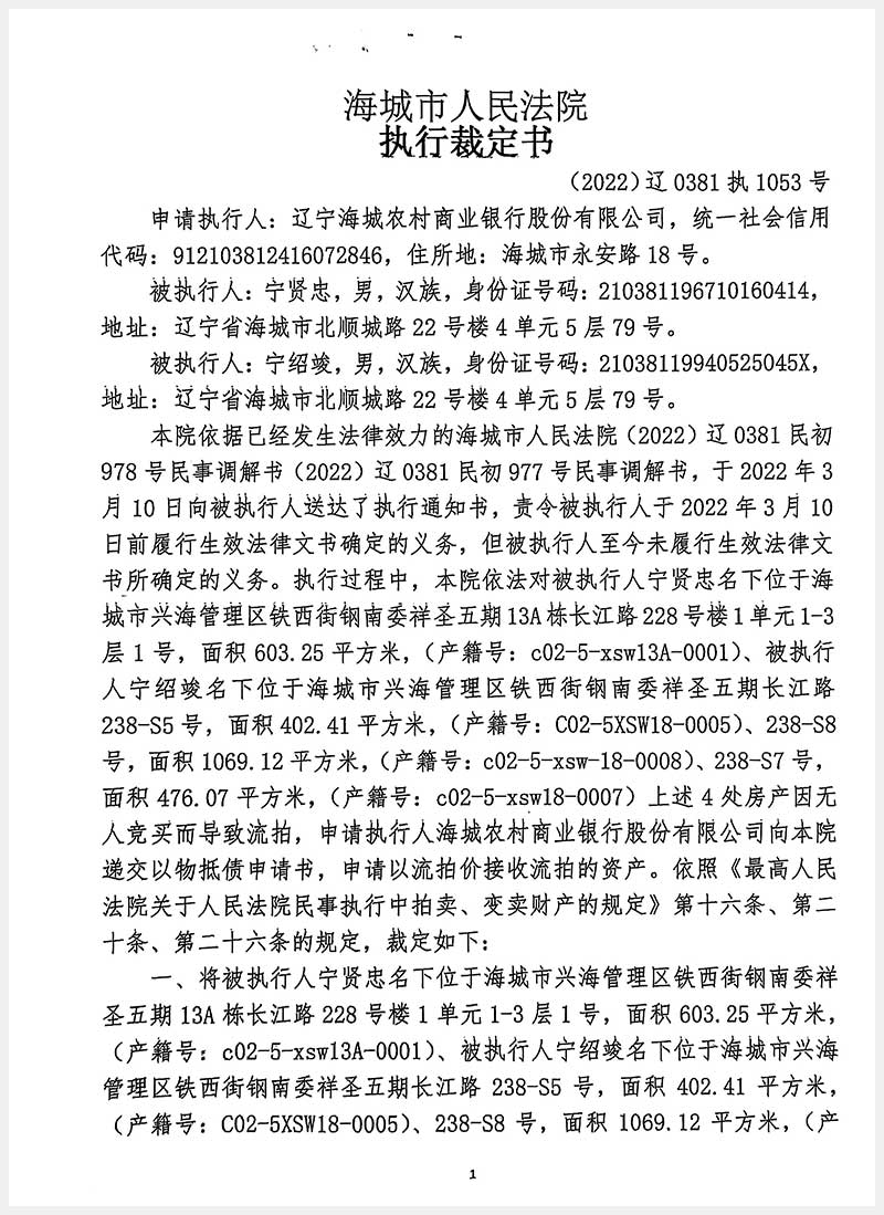 地址:海城市興海管理區(qū)鐵西街鋼南委祥圣五期 標(biāo)的號:215-1