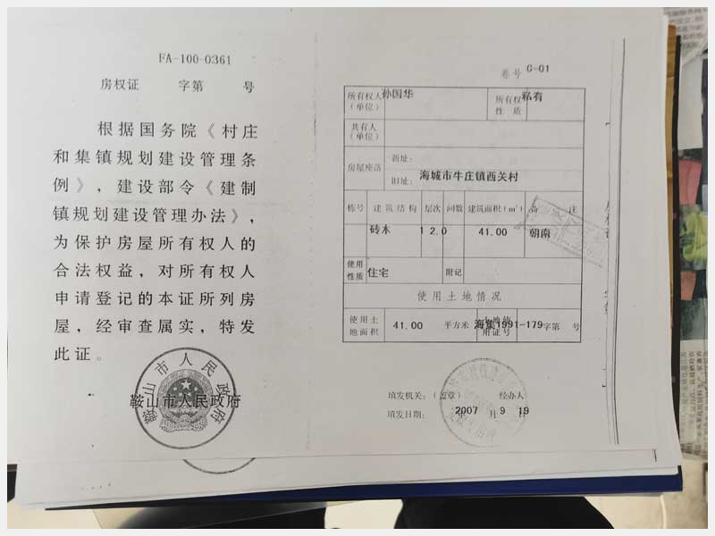 224號 海城市牛莊鎮西頭村2處房產、西關村2處房產及第三村集體土地2處、西關頭村集體土地