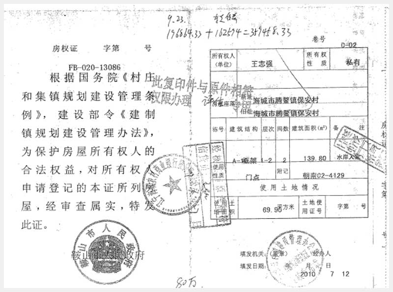 地址:海城市騰鰲鎮保安村 標的號:225-7