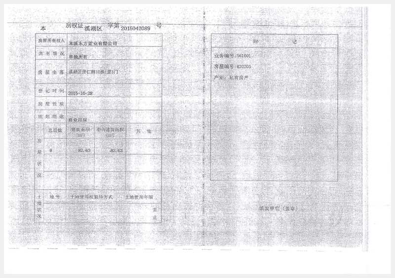 名稱:本溪市溪湖區(qū)居仁路10棟1層1門至9門房產(chǎn) 面積:1門:83.74㎡;2門:39.71㎡;3門:82.63㎡;4門:82.63㎡;5門:75.12㎡;6門:82.63㎡;7門:78.88㎡;8門:80.39㎡;9門:84.37㎡ 瀏覽次數(shù):887