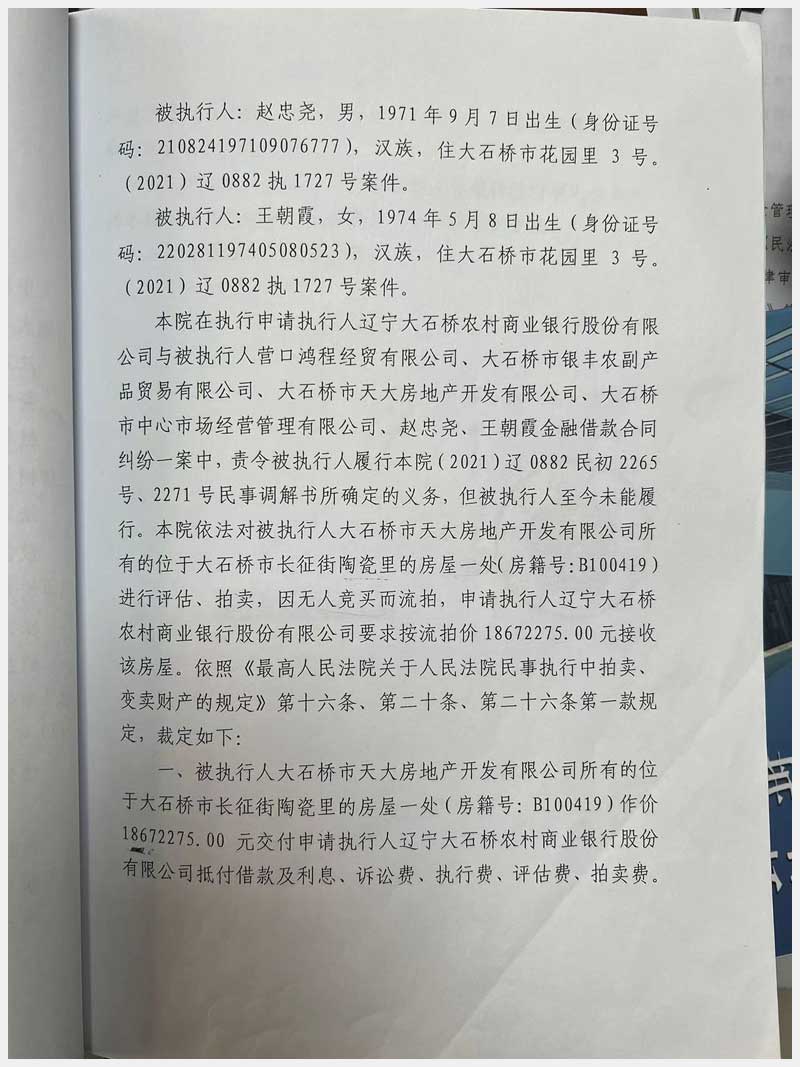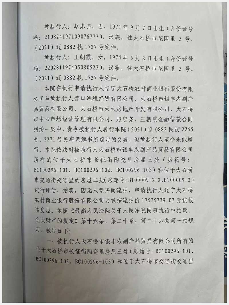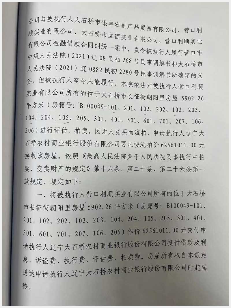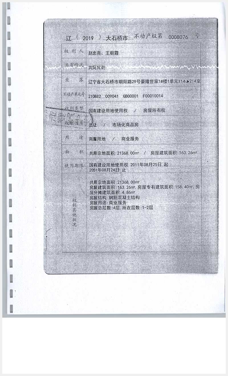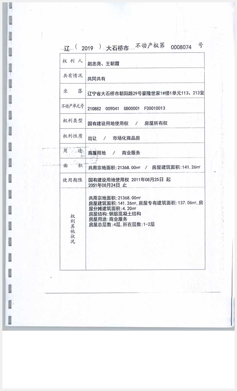 地址:大石橋市朝陽路29號豪隆世家 標(biāo)的號:11