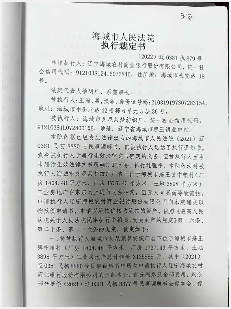 名稱:海城市感王鎮(zhèn)中糧村房產及土地使用權 面積:房產:3141.91㎡;土地:3898㎡ 瀏覽次數:838