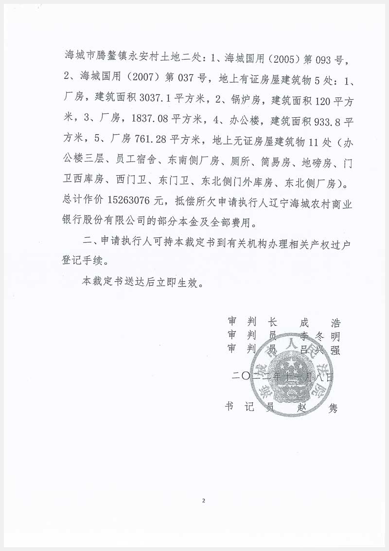 255號 海城市騰鰲鎮永安村房產及土地使用權