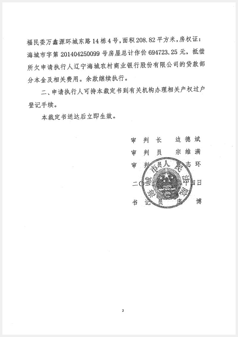 261號 海城市海州管理區(qū)東關(guān)街富民委萬鑫源環(huán)城東路14棟4號房產(chǎn)