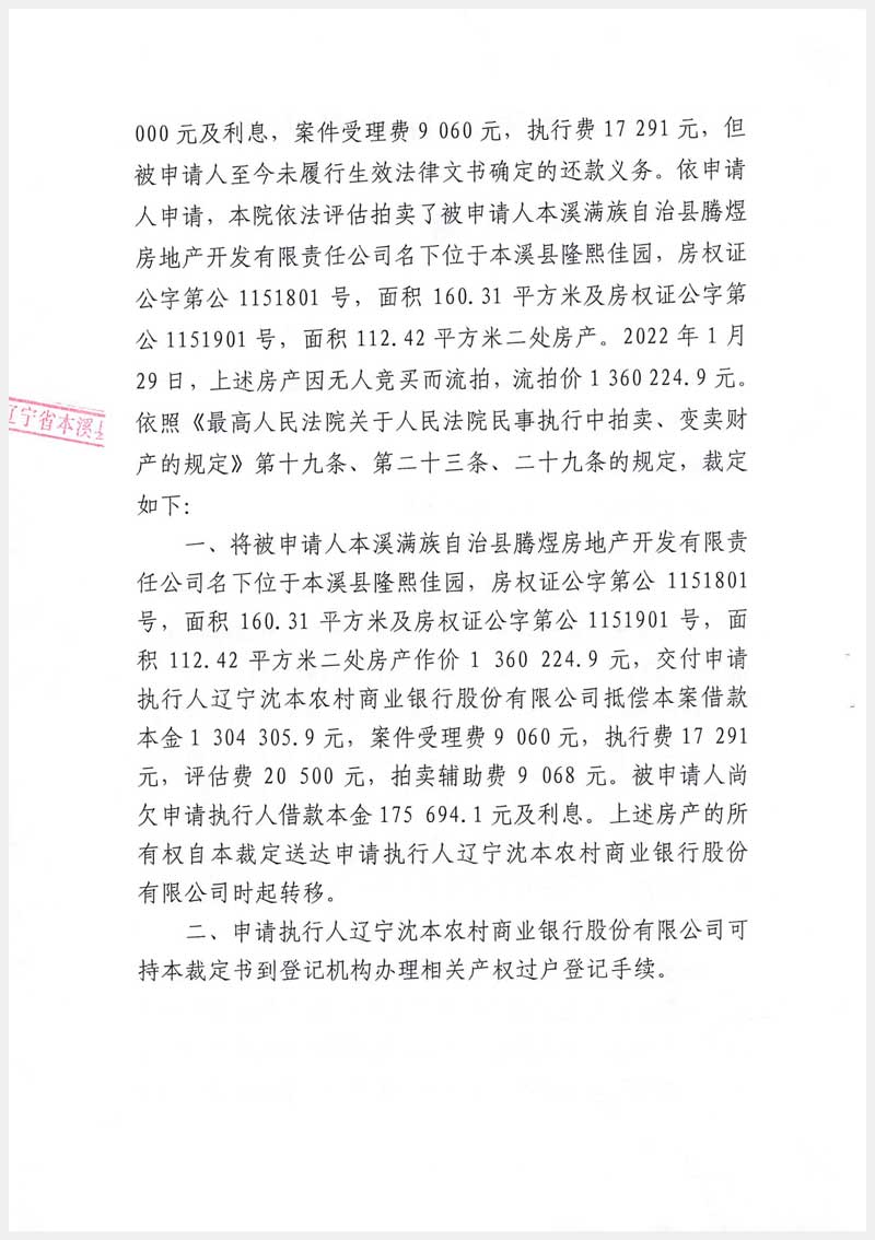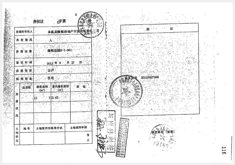 131號 本溪縣隆熙佳園5-1-801、901房產
