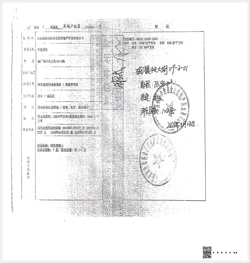 名稱:本溪滿族自治縣堿廠鎮中央大街119-3棟房產 面積:75.95㎡ 瀏覽次數:331