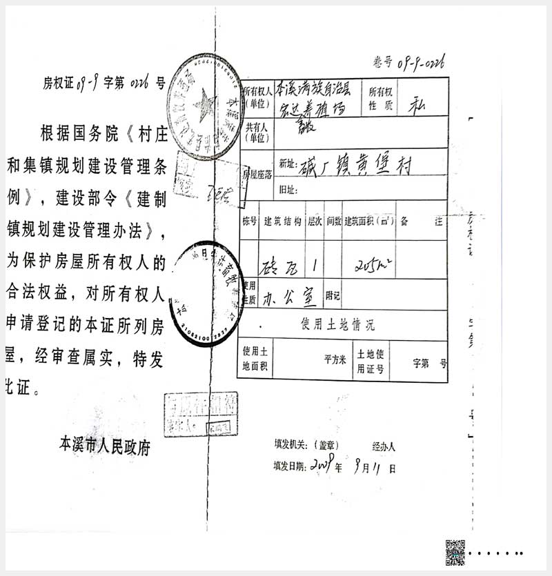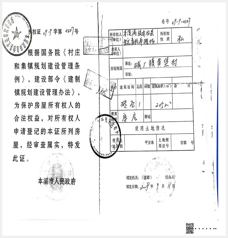 名稱:本溪滿族自治縣堿廠鎮黃堡村房產 面積:2,146.85㎡ 瀏覽次數:467