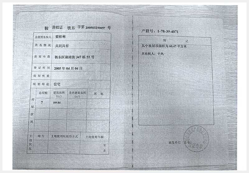 名稱:鞍山市鐵東區(qū)湖南街347棟55號房產(chǎn) 面積:189.84㎡ 瀏覽次數(shù):109
