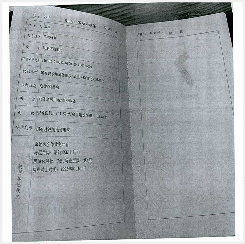 名稱:鞍山市鐵東區湖南街175號4處房產 面積:135.74㎡—165.84㎡ 瀏覽次數:108